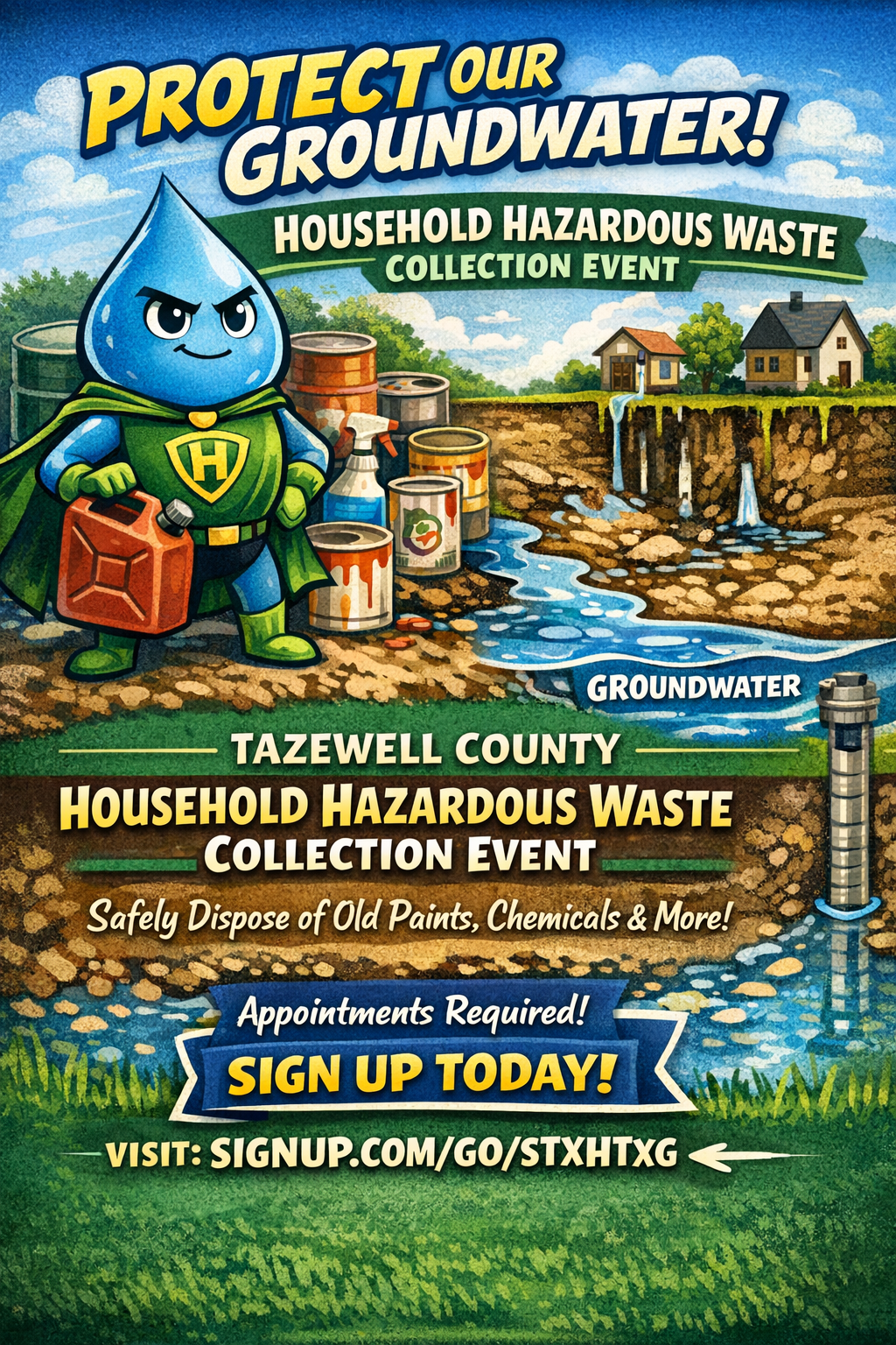 Join the Tazewell County Household Hazardous Waste Collection event. It’s one of the simplest ways to protect our community’s ground water and keep the hazardous chemicals out of the environment. Appointments are required but signing up is quick and just a click away when you go to: https://signup.com/go/sTXhTxg